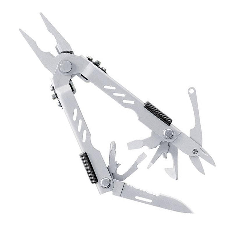 A GERBER MP400 Compact Sport multiszerszám rozsdamentes acélból, 12 funkció egy eszközben. A markolatból kihajtható szerszámok mindegyike véletlen becsukódás ellen reteszelt, ami növeli a biztonságos használatot. Ballisztikus gyöngyvászon tokkal.